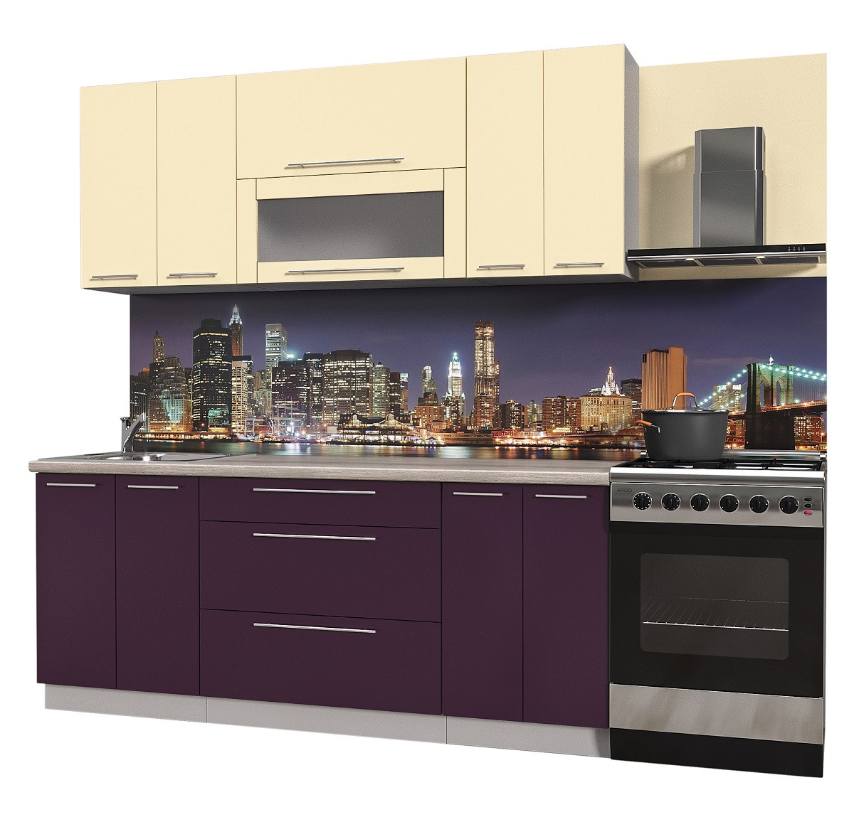 Кухня Мила Пластик 2.0В 2.0м Ваниль - Слива