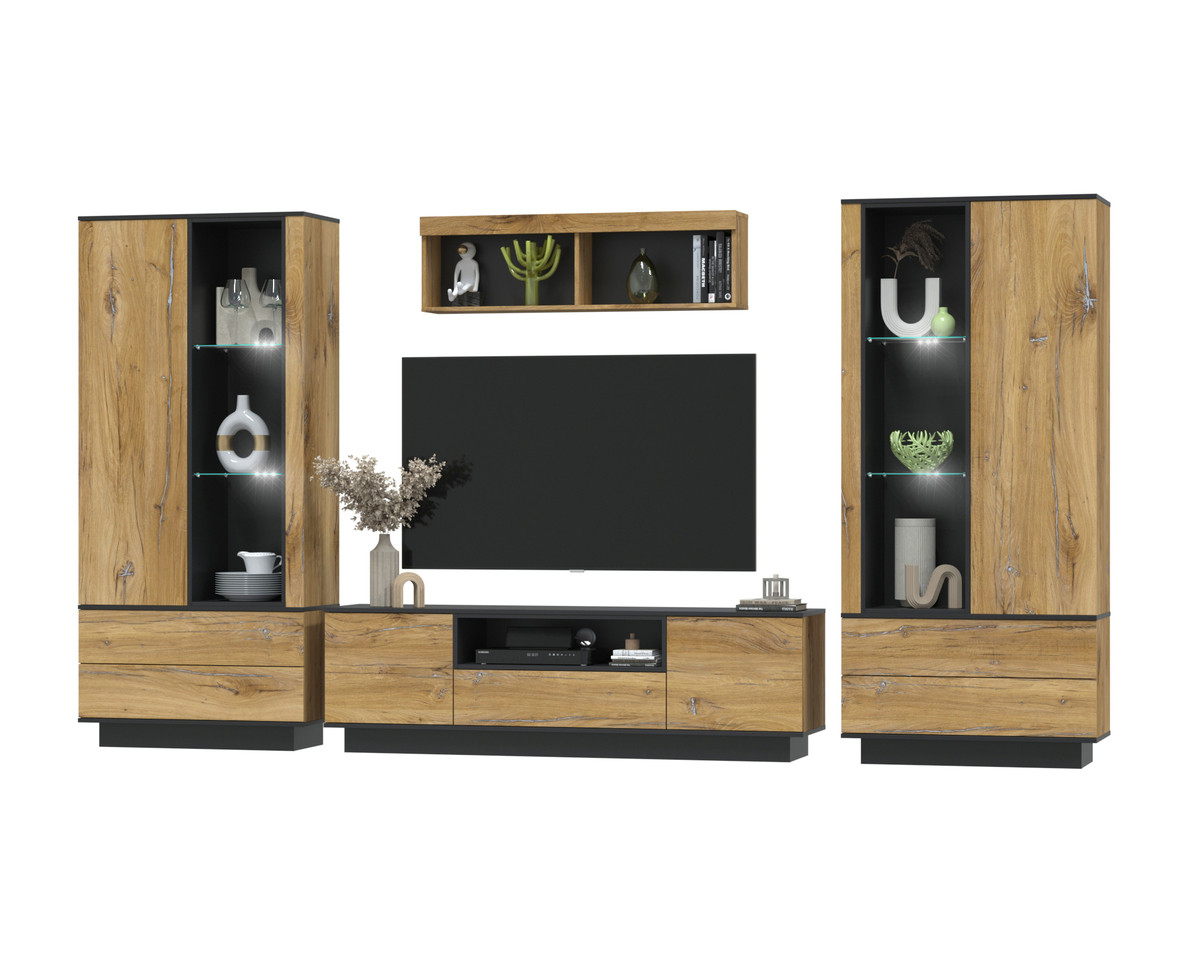 Гостиная Quartz-3 с подсветкой Черный - Дуб нокс