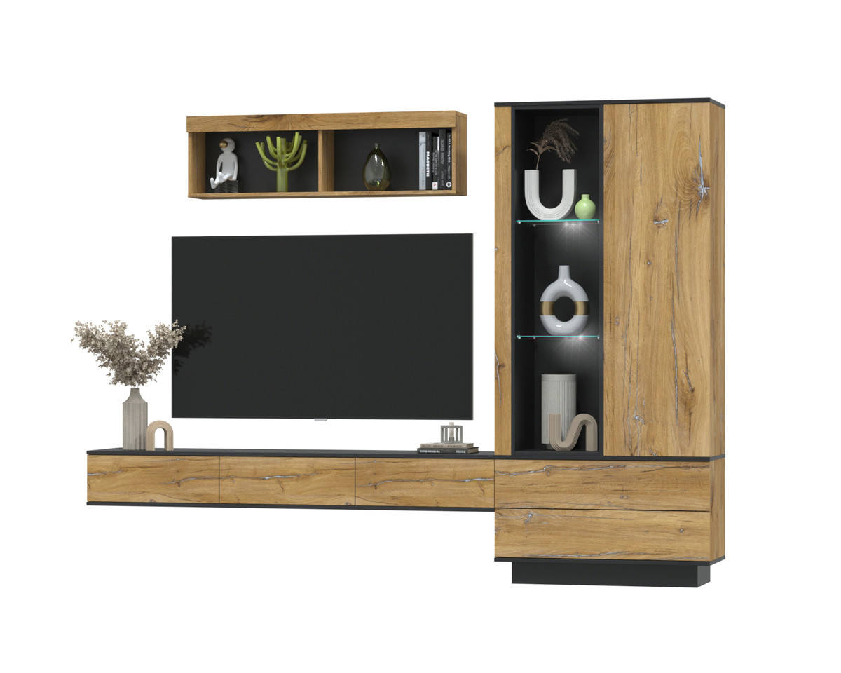 Гостиная Quartz-10 с подсветкой Черный - Дуб нокс