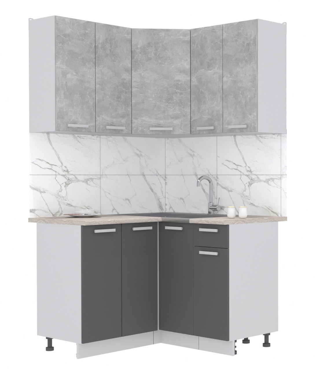 Кухня угловая Мила Лайт 1.2х1.2 м Бетон лайт - Антрацит