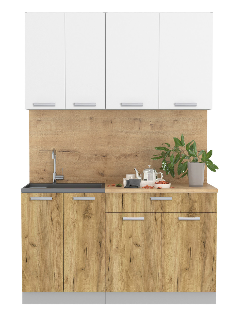 Кухня готовая Мила Лайт 1.4м-60 Белый платинум - Дуб золотой