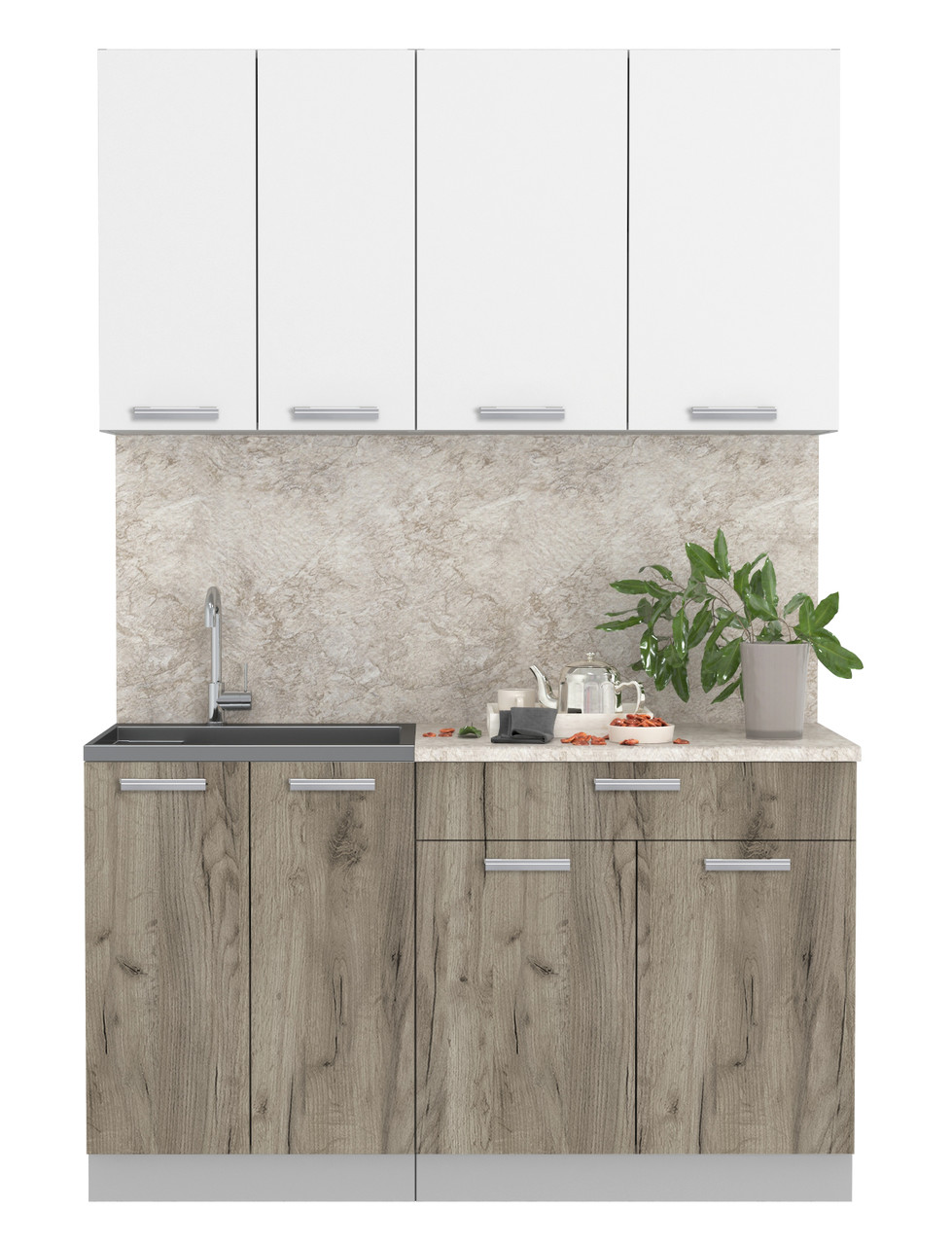 Кухня готовая Мила Лайт 1.4м-60 Белый платинум - Дуб серый