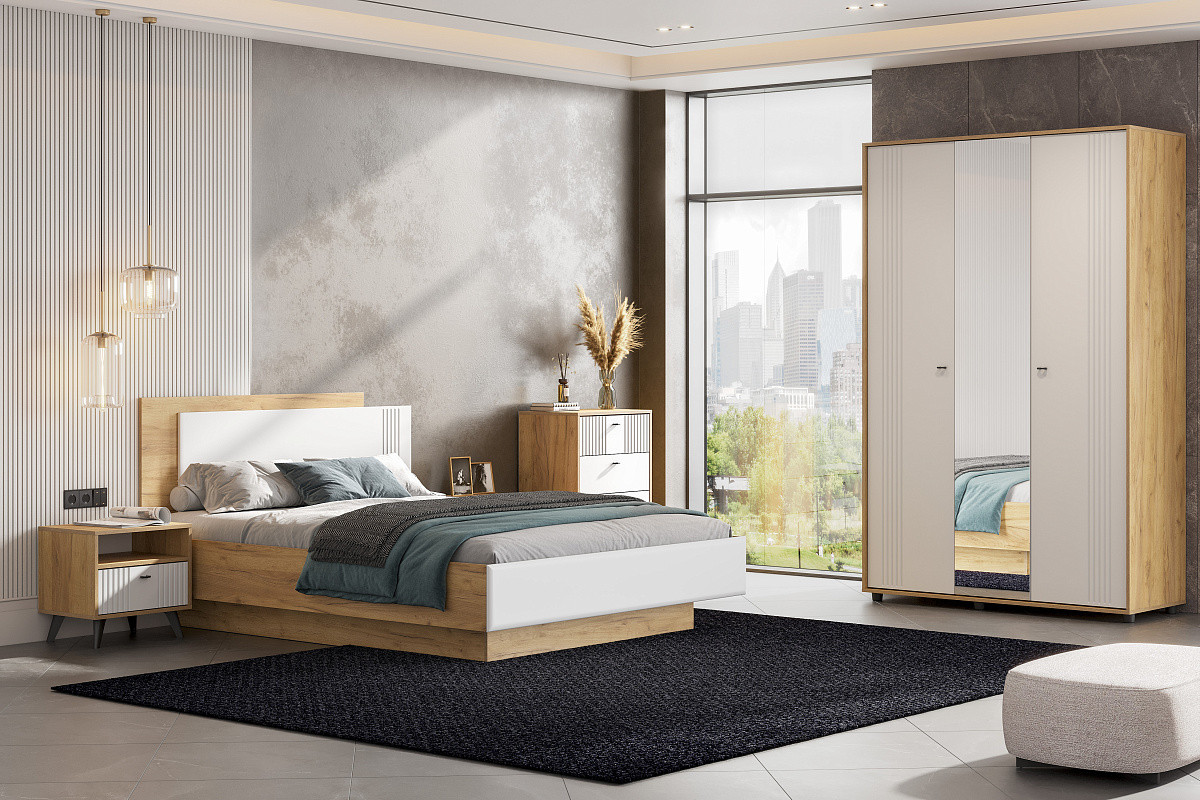 Спальня Милан Дуб золотой - Белый матовый