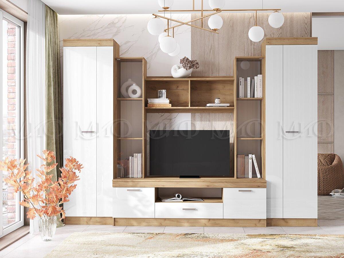 Стенка для гостиной Атлантида 6 Дуб крафт - Белый глянец