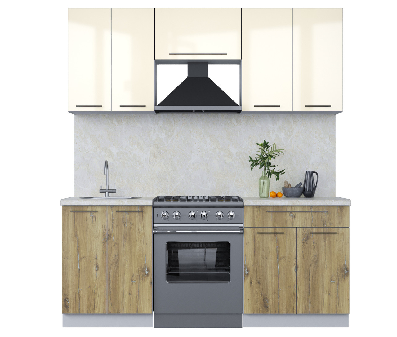 - Цвет фасадов (верх-низ) - Ваниль - Дуб эпоксид (кромка ПВХ, цвет Алюминий)