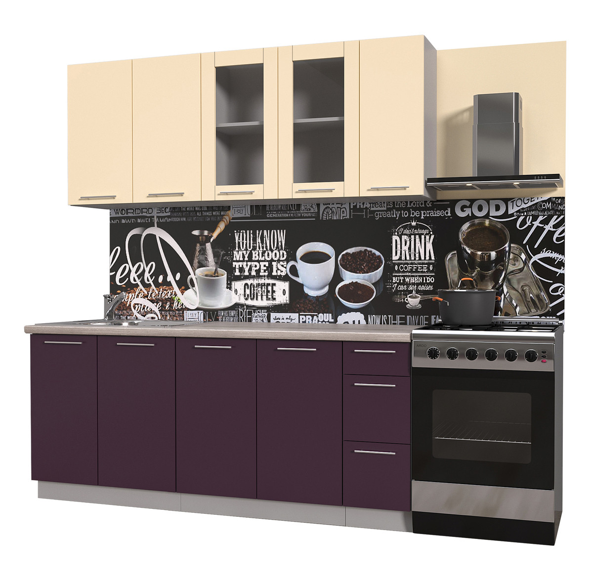 - Цвет фасадов (верх-низ) - Ваниль - Слива (кромка ПВХ, цвет Алюминий)