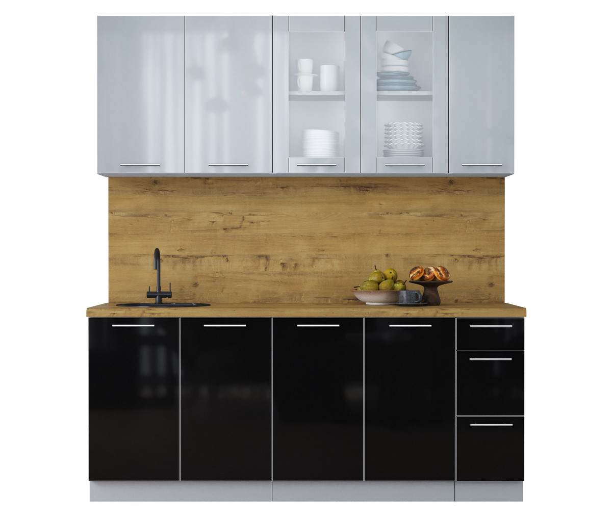 - Цвет фасадов (верх-низ) - Туманный глянец - Черный глянец (кромка ПВХ, цвет Алюминий)