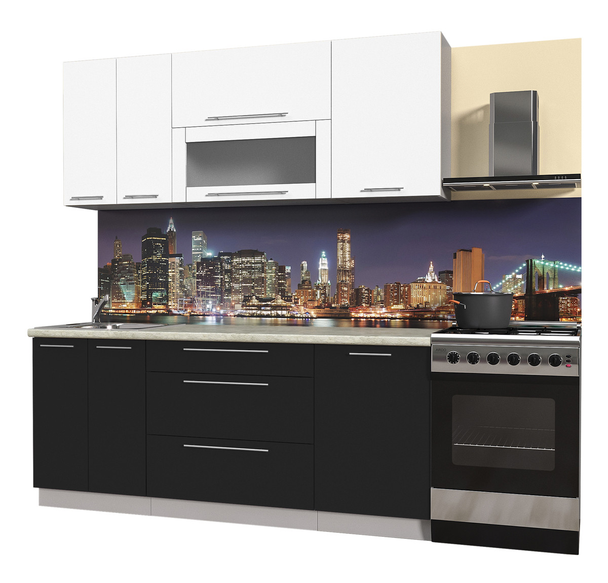 - Цвет фасадов (верх-низ) - Белый глянец - Черный глянец (кромка ПВХ, цвет Алюминий)